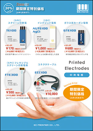 Zensor社の優れた電気化学的性能を有するプリント電極を期間限定(2026年3月末迄)で特別価格にてご提供いたします。今後、この価格でのご提供はございませんので、この機会に是非お買い求め下さい。