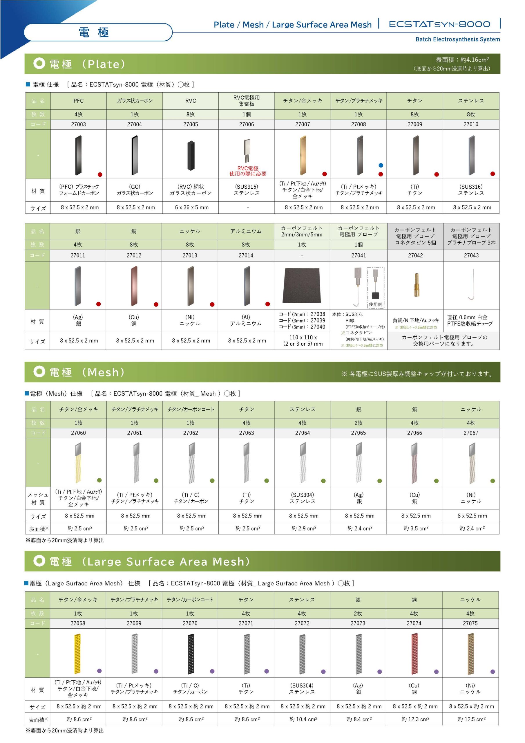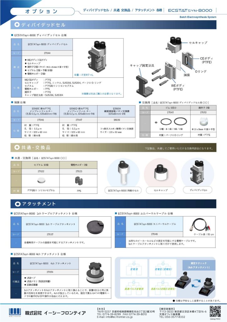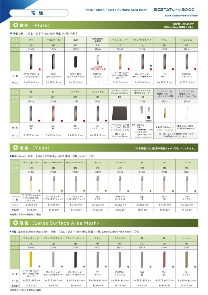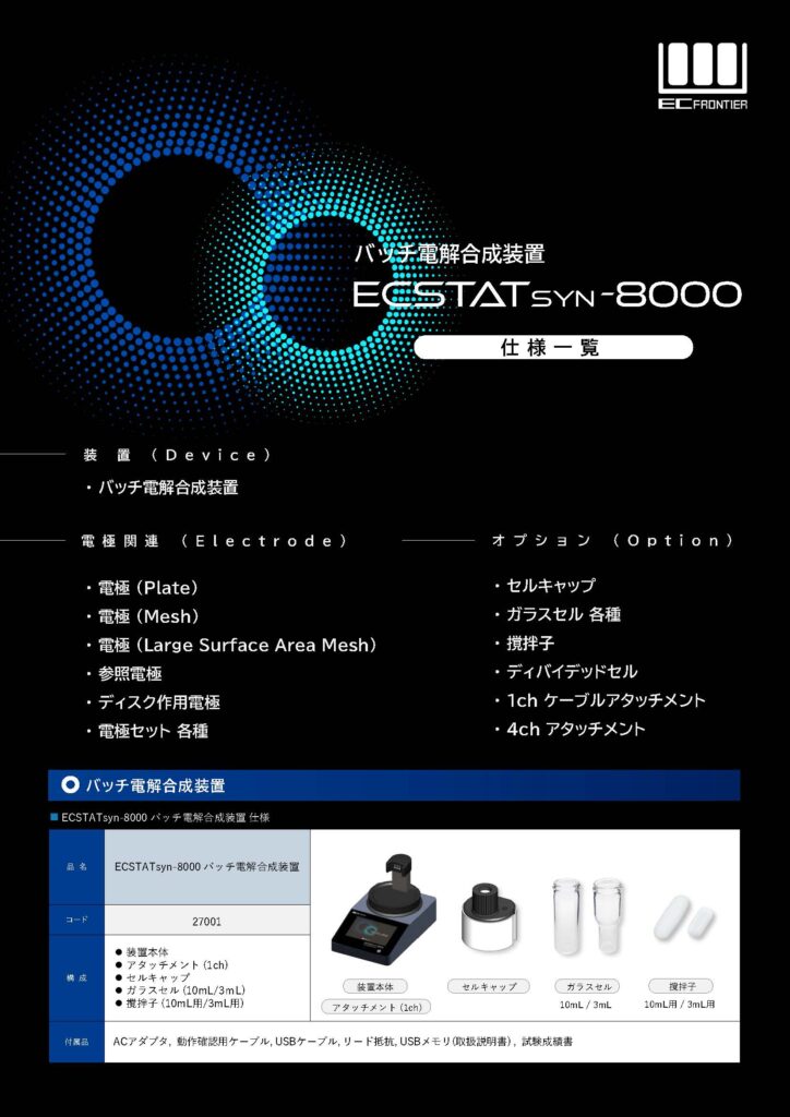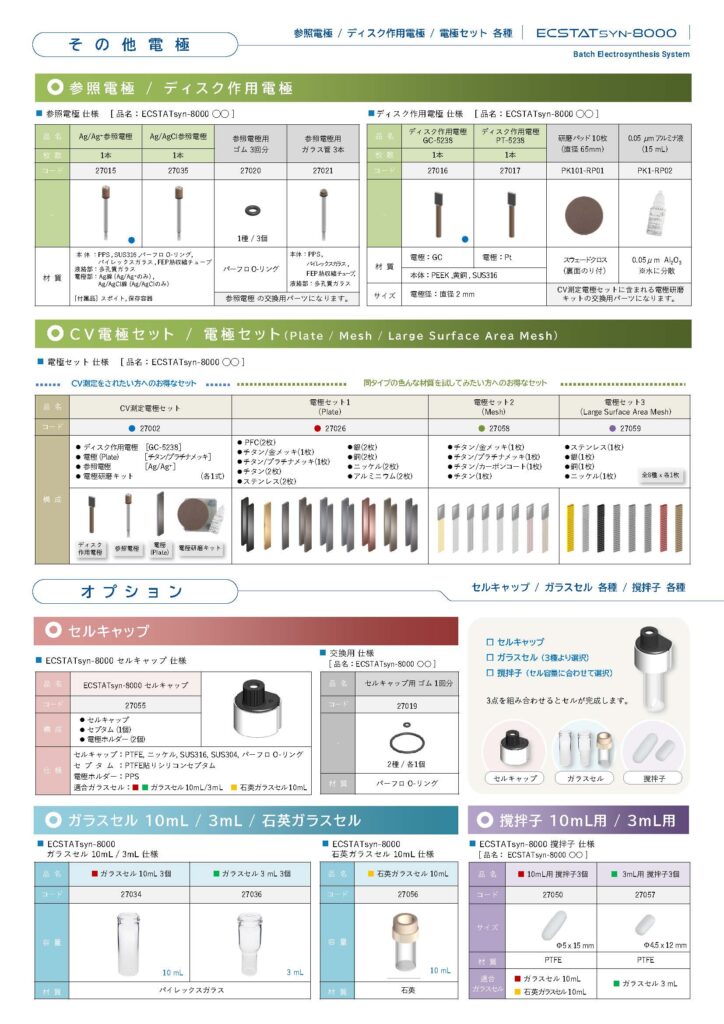 バッチ電解合成装置ECSTATsyn-8000に下記商品を追加しました。