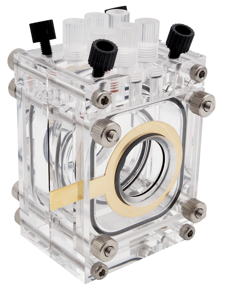 金属電極や透明のITOやFTO電極を完全に対向した形で配置できる構造です。