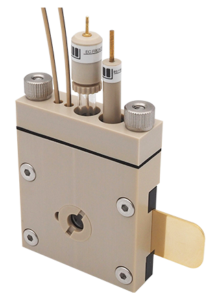 透明電極用のバッチ型の分光電気化学セルで、ECS-9000 プレート用ホルダーに挟み込むだけで