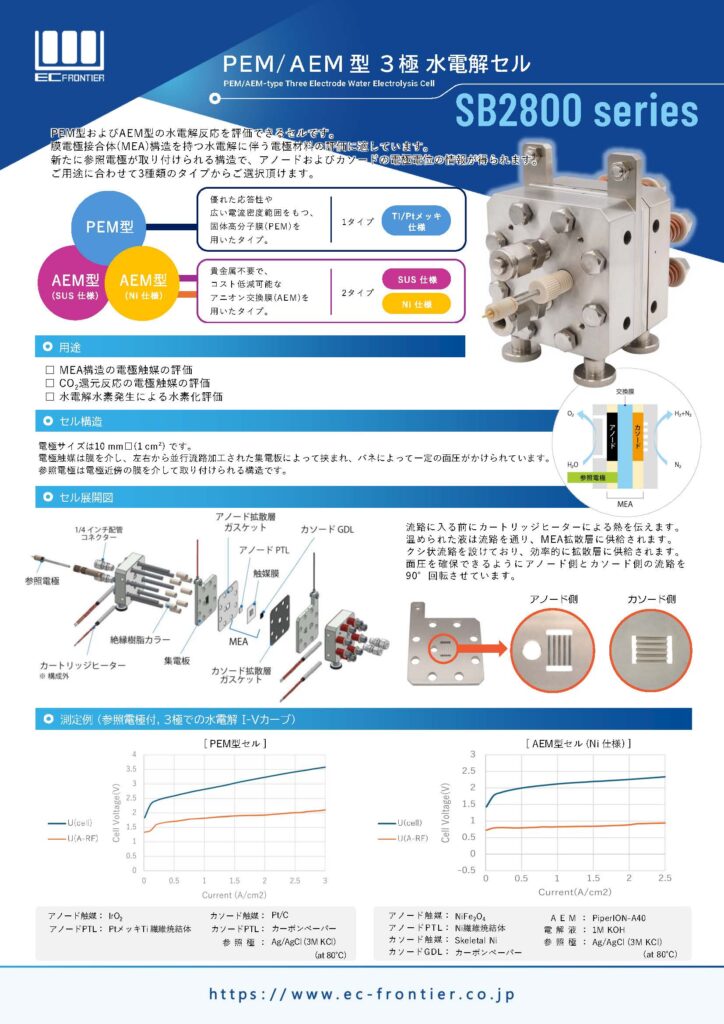 【PEM/AEM型 3極水電解セル SB2800 series】