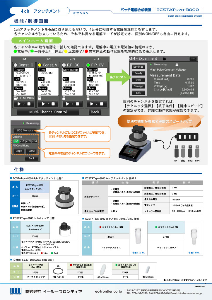 バッチ電解合成装置ECSTATsyn-8000に4chアタッチメント(code:27054)