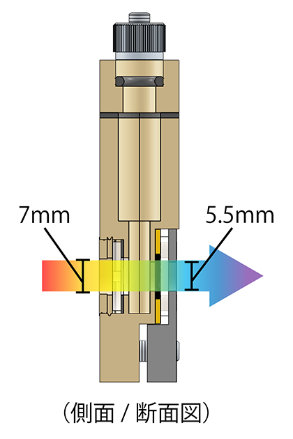 電極径は5.5mmで透過石英窓の有効径は7mmです。