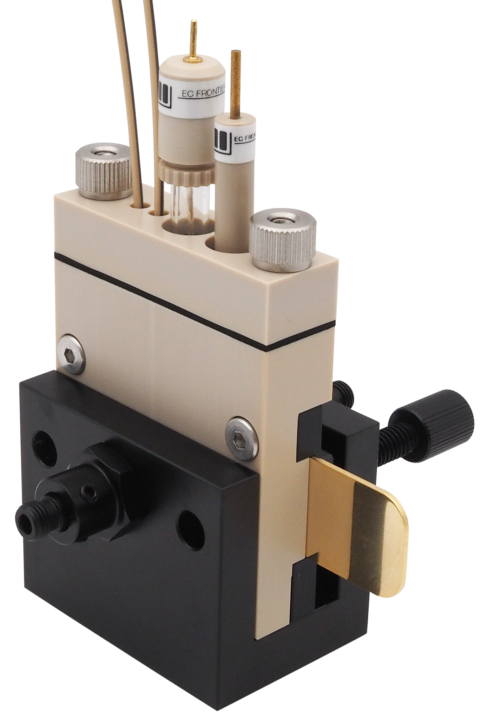 ECS-9000 プレート用ホルダーに挟み込むだけで、in-situ 分光-電気化学測定を可能にします。