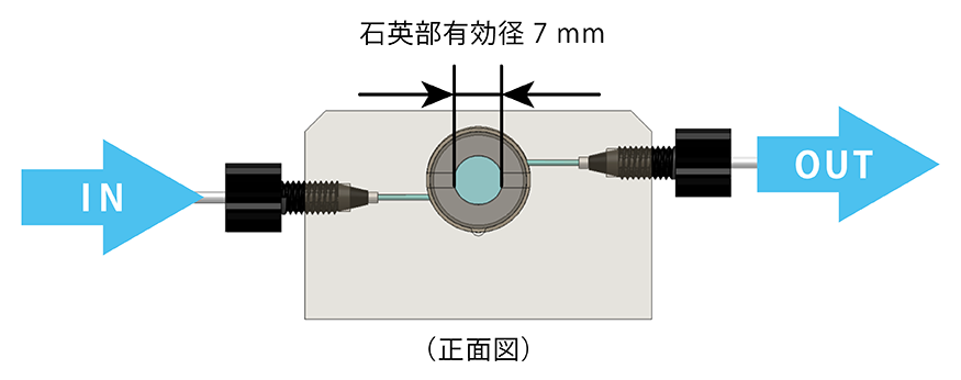 入射・透過部とも透過窓は、可視/紫外/赤外領域で高い透過性を示す石英を使用しています。