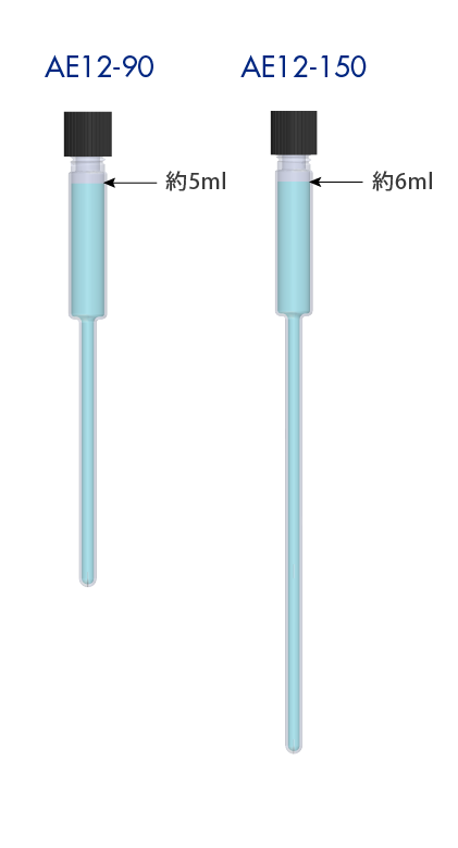 電解液はAE12-90で約5ml、AE12-150で約6ml入りますので、例えば Ag/AgCl参照電極のClイオンのサンプルへのリークを長時間に渡り防ぐことができます。