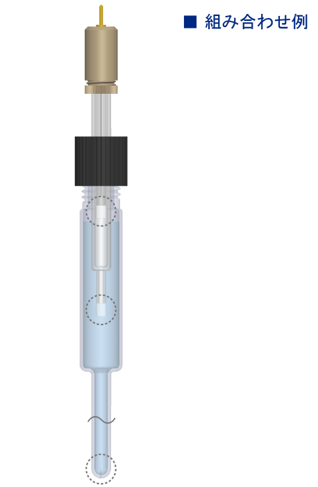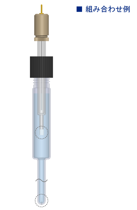 液絡部はセラミックフィルタがガラスに溶着されていますので電解液を入れてご使用頂けます。