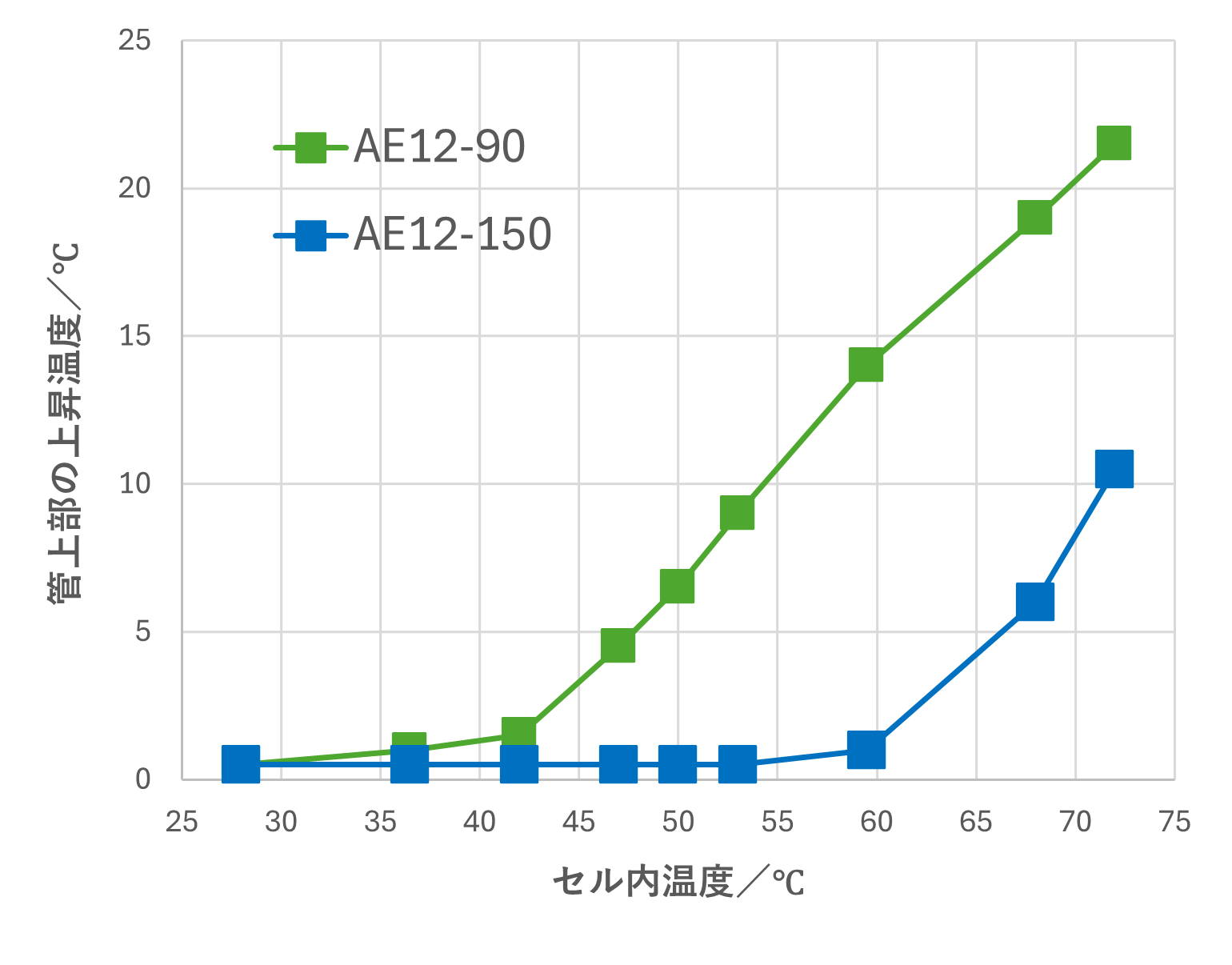 AE12-150ではセル内温度が65℃でも、参照電極は常温から+5℃以内に抑えることができました。